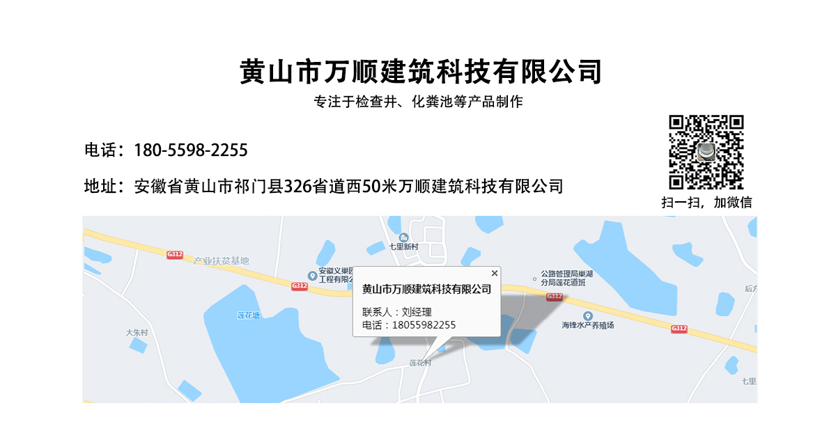 黃山市萬順建筑科技有限公司是集研發(fā),生產(chǎn)制造,市場推廣為一體的綜合性企業(yè)。公司主要經(jīng)營環(huán)保型預制鋼筋混凝土裝配式組合型檢查井和蓄水裝置等城建配套產(chǎn)品。產(chǎn)品生產(chǎn)過程采用獨特的生產(chǎn)工藝,機械化流水作業(yè)。產(chǎn)品大規(guī)模生產(chǎn),生產(chǎn)效率高,耗能少,成本低,產(chǎn)品使用壽命長、免維護、無滲漏、無污染,符合“綠色環(huán)保,低碳節(jié)能”的發(fā)展要求,是傳統(tǒng)磚砌井池的理想替代產(chǎn)品。